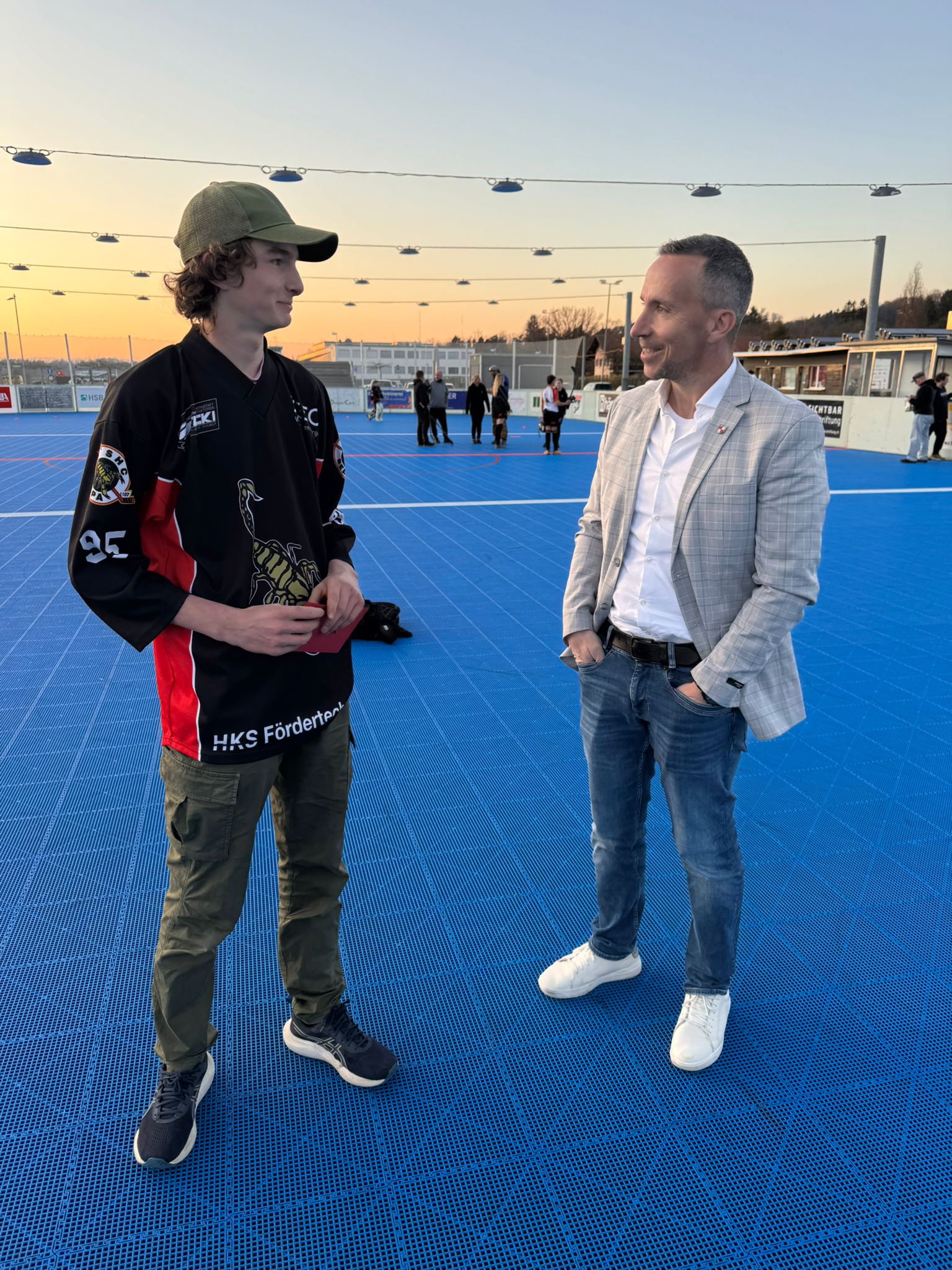 Am sonnigen Mittwoch Abend vor Trainingsbeginn begrüsste die U12 den Gemeinderat Thomas Walther und René Walker von der Fachstelle Generationen in Belp auf dem Spielfeld.